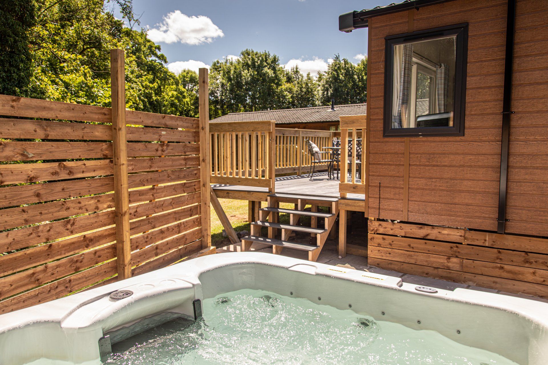 Your own gated deck, featuring stylish outdoor furniture and loungers, and your own private hot tub (except Rutland Lodge) – accommodating four people – which is available all year round for you to use whenever you wish.